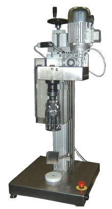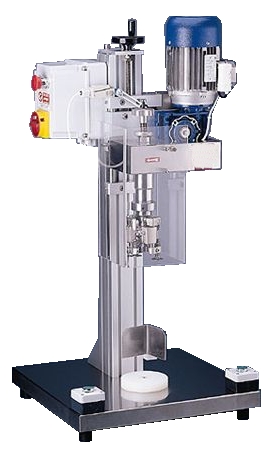Eter Visseuse semi automatique avec sertissage à galets pour bouchons métalliques. Têtes à 2 / 3 / 4 galets. Sur ce modèle le flacon monte sous la tête. Cadence : jusqu’à 800 produits / heure |