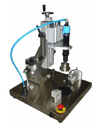 Visseuse pendulaire Machine pour bouchons avec tête interchangeable. Démarrage automatique au contact du bouchon Cadence : jusqu’à 800 produits / heure |