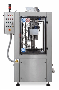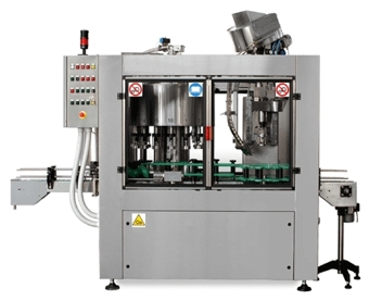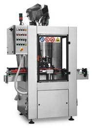 RCS-16/1 Remplisseuse à niveau constant pour bouteille verre, équipé d'un poste de bouchage mono tête pour divers diamètre de bouchon type capsule à vis Cadence : jusqu’à 3500 flacons/heure |